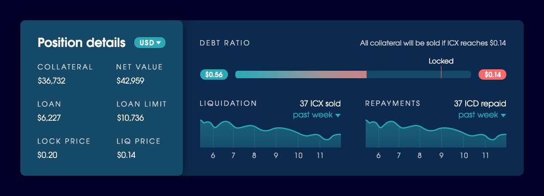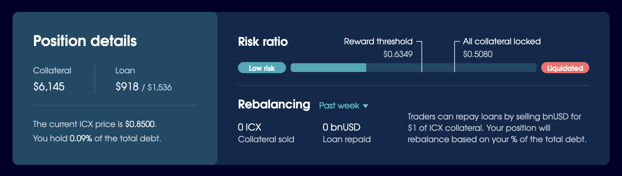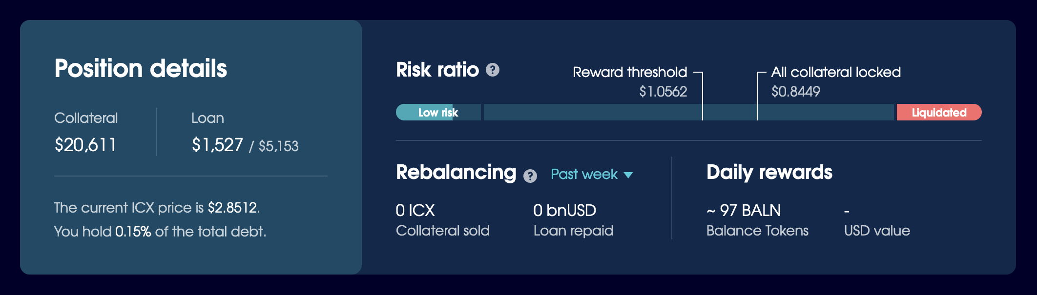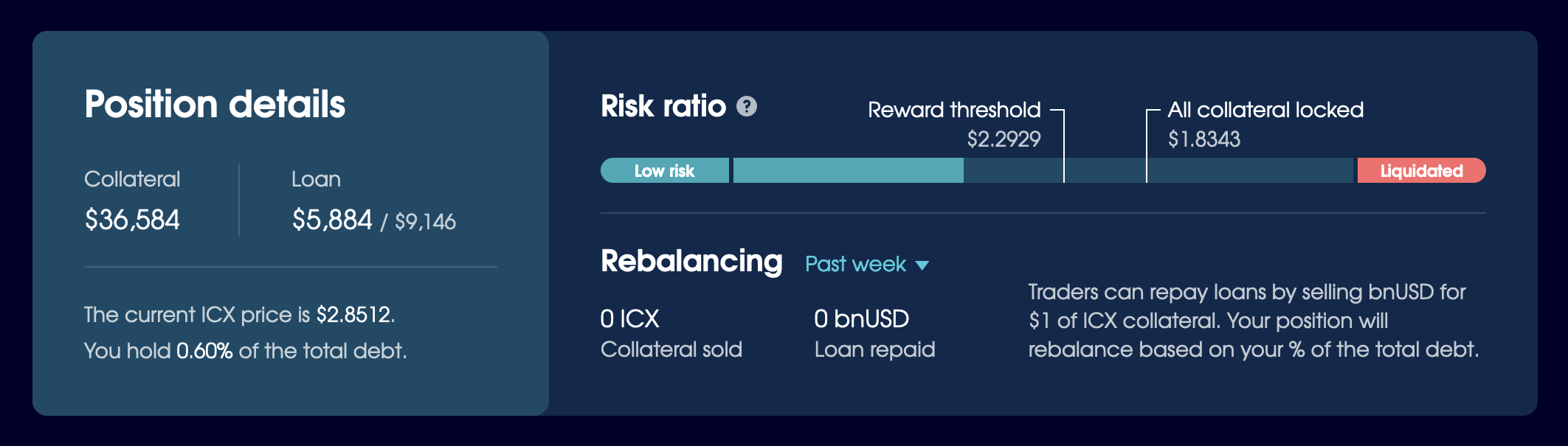- Their risk ratio, collateral value, reward threshold, and loan limit, which constantly fluctuate with the price of ICX