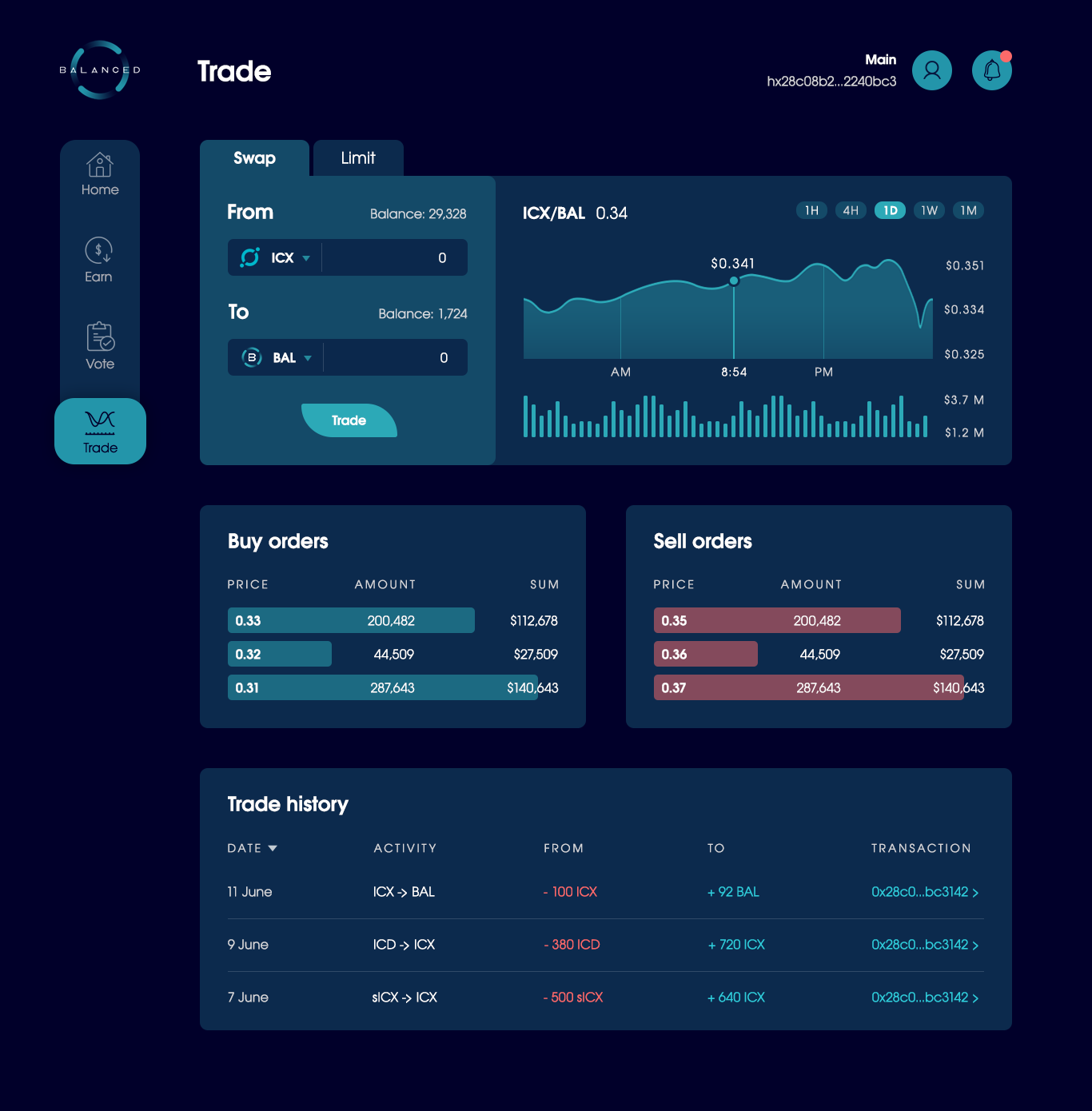 As for the trading experience, we designed an exchange to facilitate the circulation of Balanced assets... twice.