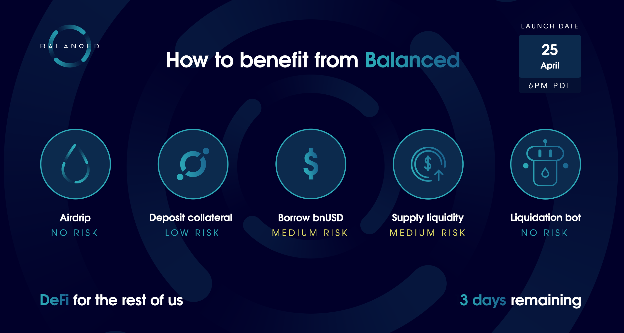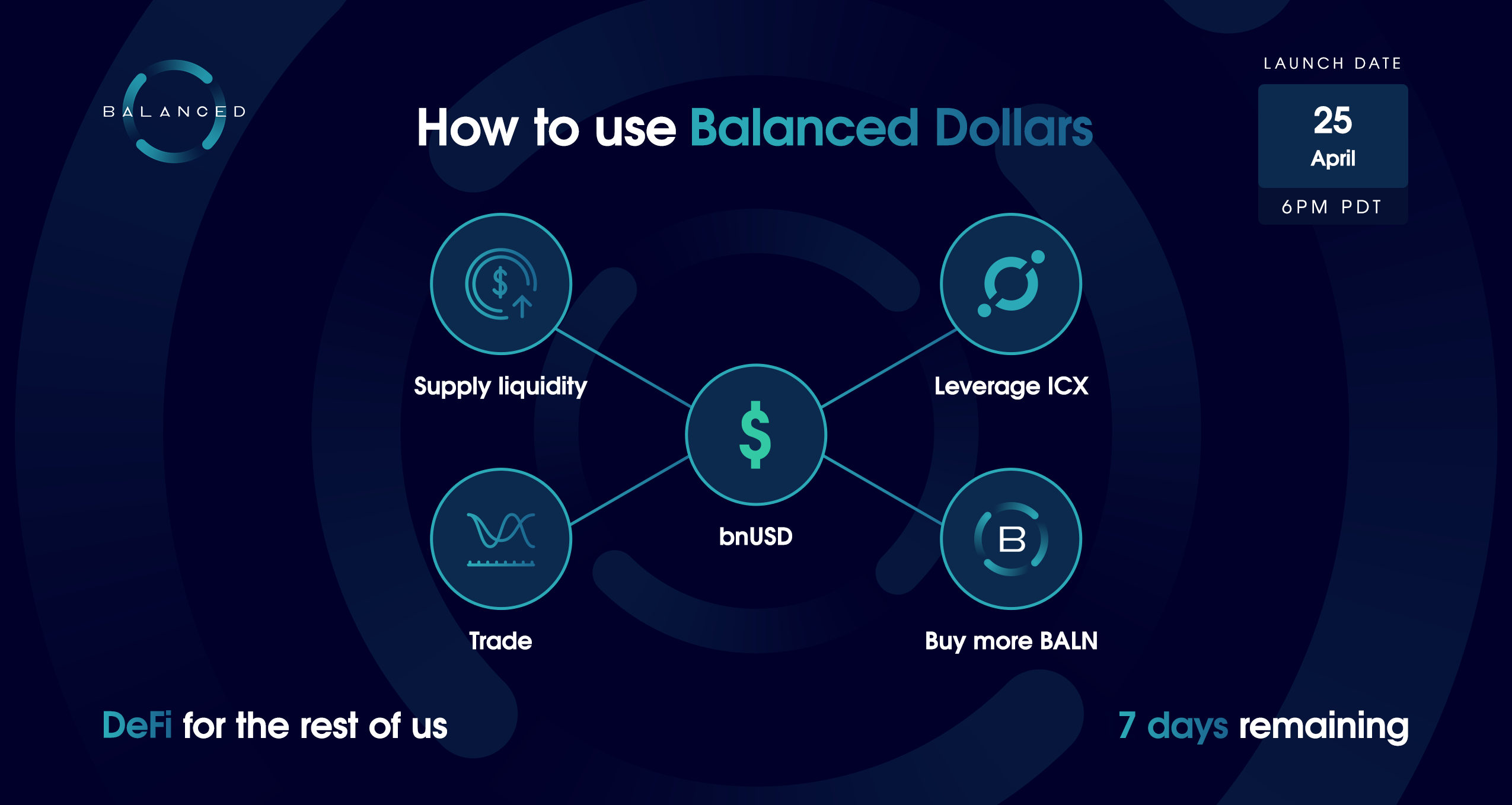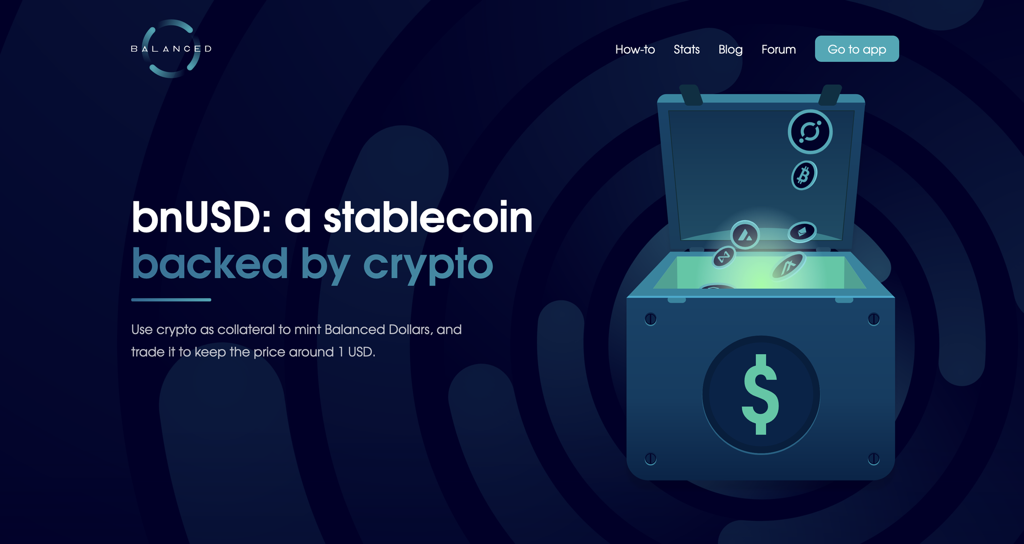 Balanced would allow people to mint and borrow Balanced Dollars (bnUSD), a stable cryptocurrency pegged to the value of 1 USD. To facilitate the trading and widespread use of bnUSD, Balanced would also include an exchange.