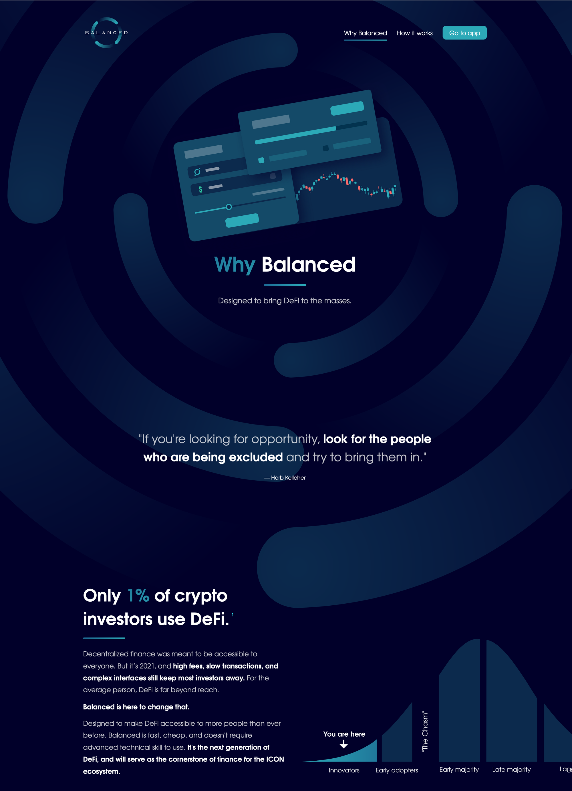 As for the announcement website, it would serve as the default explanation of Balanced until launch. With no product defined yet, all we had to work with was a white paper draft, which required most of the first month to absorb, rewrite, and explain the core benefits in a way that non-technical readers could understand.