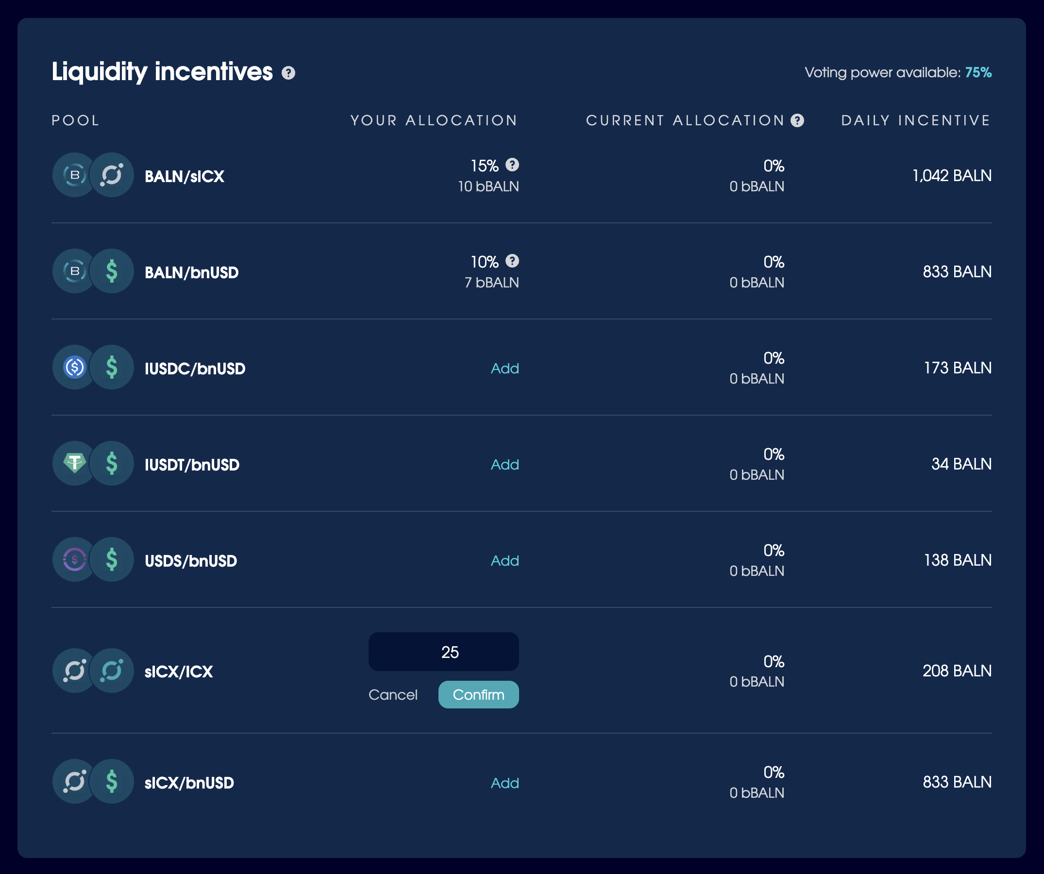 Steps 2 & 3 would also be helped by incentives in the form of Balance Tokens (BALN), the Balanced governance token. Governance tokens are equivalent to voting shares in a business, and often come with additional benefits, like fee payouts.