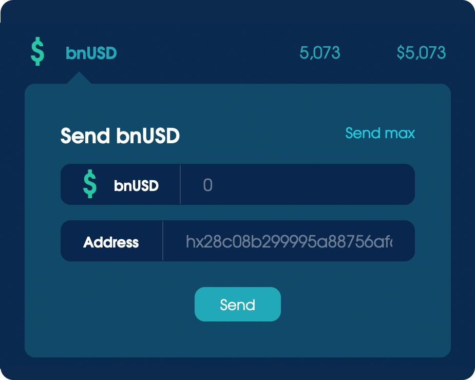 To make bnUSD easy to send, we included a Wallet section on the Home page. You can view and manage your assets inline, without losing context of your position.