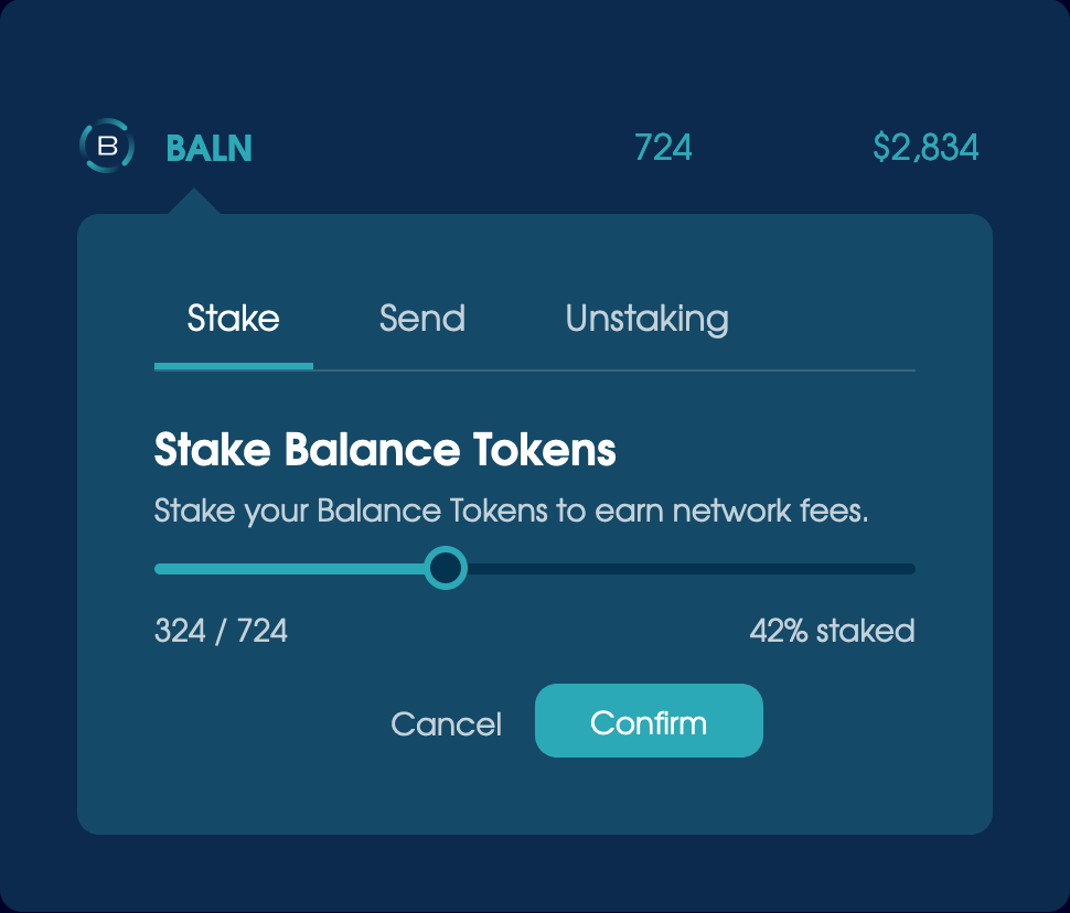 Liquidity providers are incentivised with BALN, which made it easier to attract interest. As for the design, we reused the slider-calculator functionality. Most liquidity pools require an even value of 2 assets, so you can use the slider to set the correct ratios and see an estimate for the amount of BALN you can earn daily.